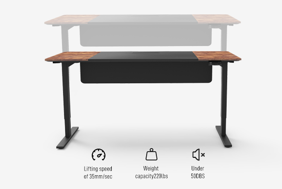 • This 62 lbs solid standing desk frame is made from 1.5 mm thick cold-rolled steel, maximizes the lifetime of the standing desk, and provides the best stability.